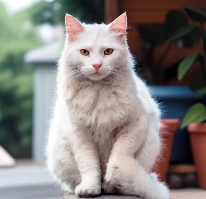 Сидела старая белая кошка бабушки. Её вынесли во двор, как и ставшую ненужной мебель.
