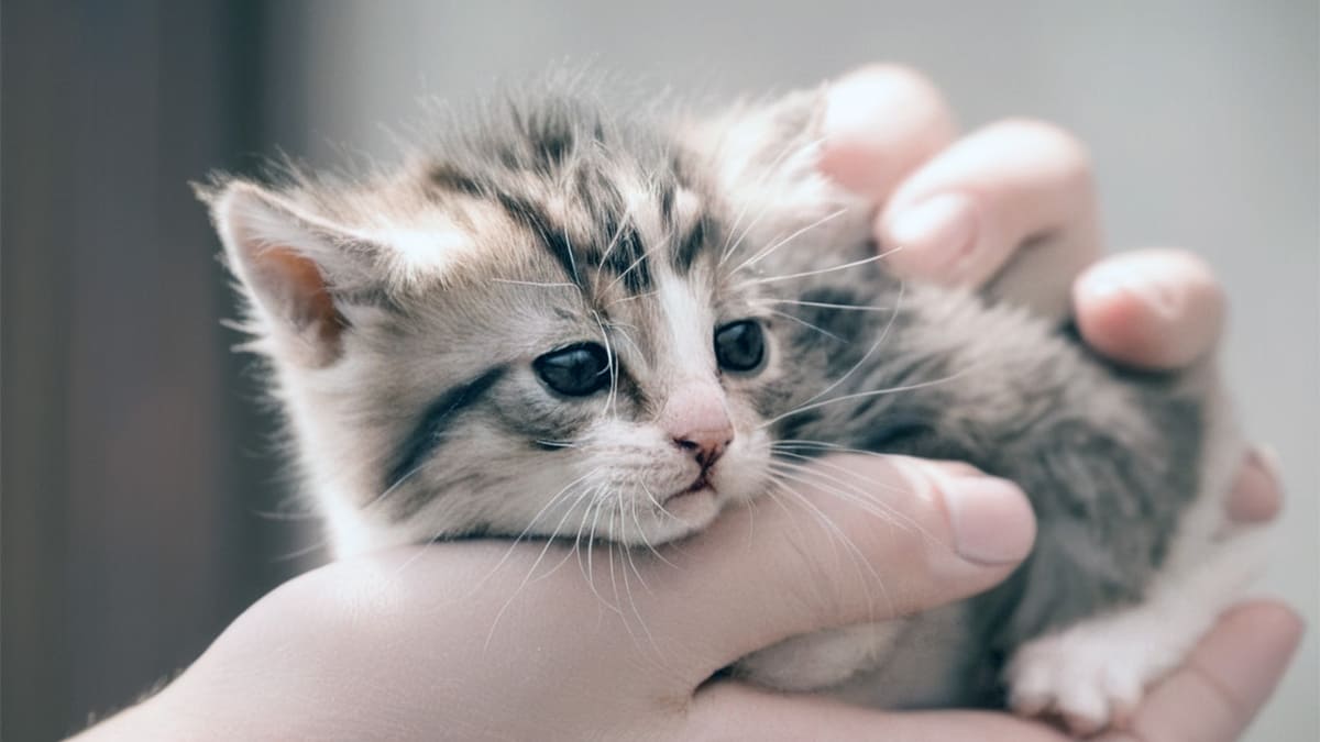 Котёнок открывал маленький ротик и, судя по всему, жалобно кричал.