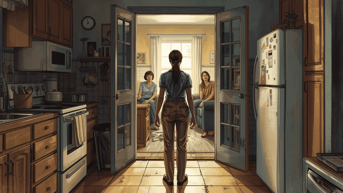 Виктор не ушёл в зал с телевизором. Он сидел на кухне и смотрел, как она работает. Потом встал, взял тряпку и протёр стол.
