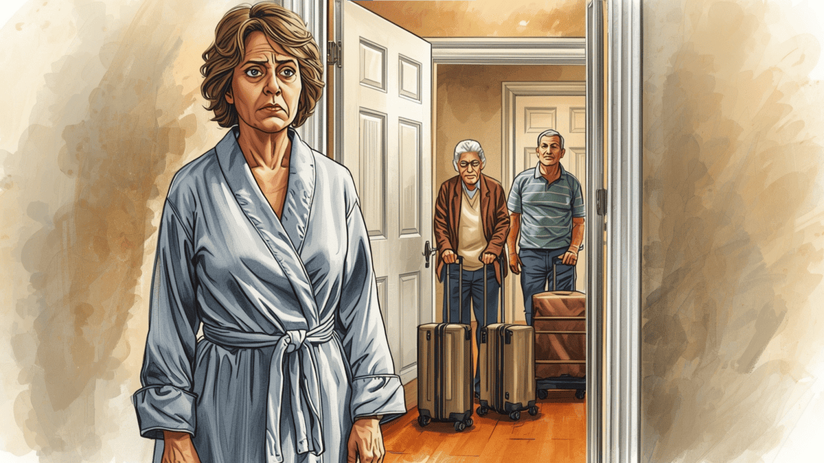 На площадке стояли двое. Женщина лет семидесяти в шерстяном пальто, несмотря на то что на улице был май, и мужчина помоложе с большой клетчатой сумкой на колёсиках и рюкзаком. Лица Елена не сразу узнала, потому что последний раз видела их года четыре назад, на каком-то семейном застолье у Сергея в деревне, мельком, за праздничным столом.