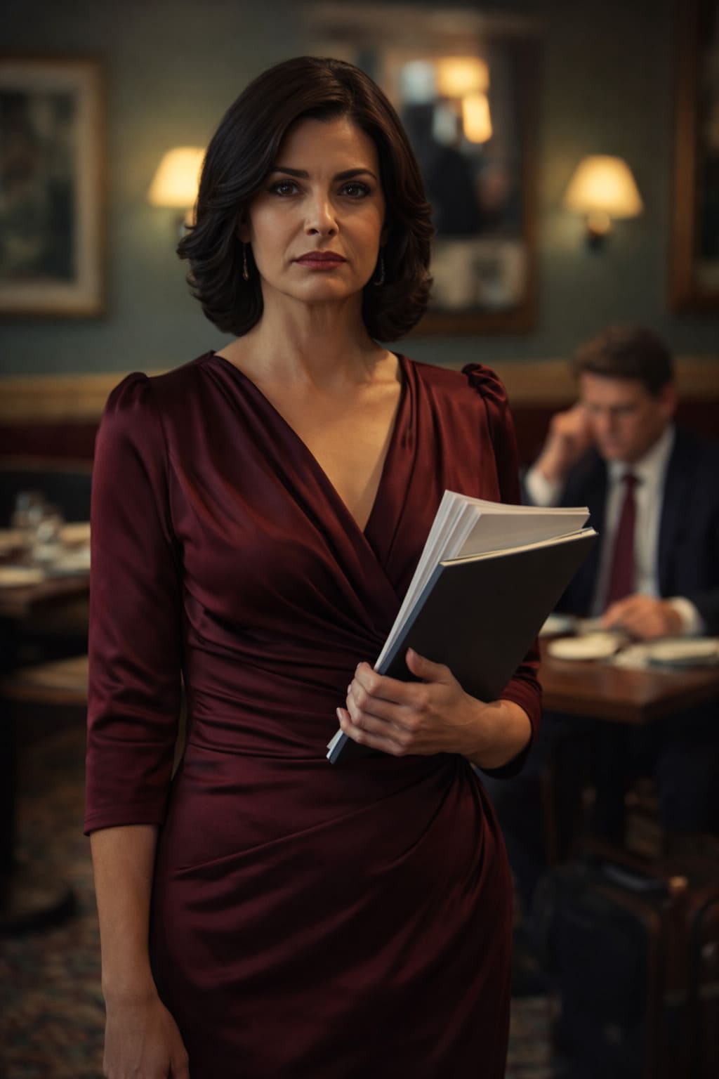 В семь вечера Вероника стояла в примерочной кабинке в ресторане Л-Опера. Туалет был небольшим, с тёплым освещением и зеркалом в полный рост. Она надела платье. Платье сидело. Она смотрела на своё отражение, и впервые за долгое время не отводила взгляд.