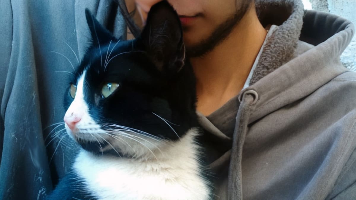 Однажды, пару лет назад, вынося мусор после работы, он наткнулся на шевелящийся в мусорном контейнере пакет. Вытащил его и ахнул: малюсенький, слепой и кричащий котёнок.