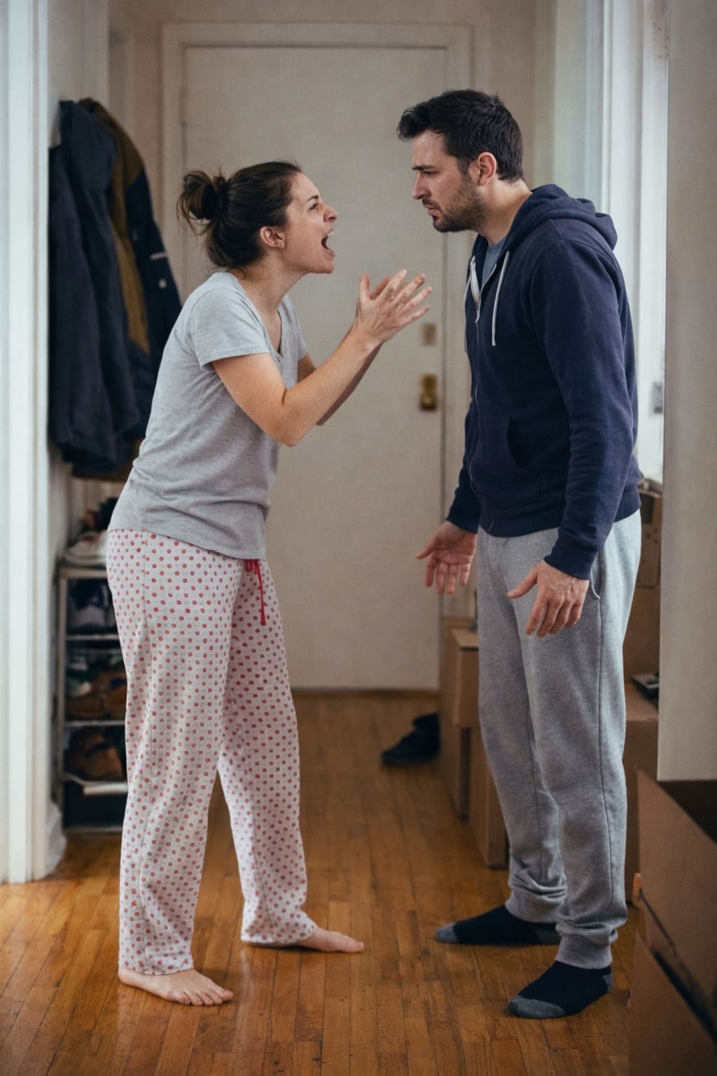 — Ты что несешь? Я муж! Я глава семьи! Я о нас забочусь, дура ты набитая! Я единственный, кто думает о нашем будущем, пока ты сопли жуешь! Ты меня выгоняешь? Меня? Того, кто пытается вытащить нас из нищеты?