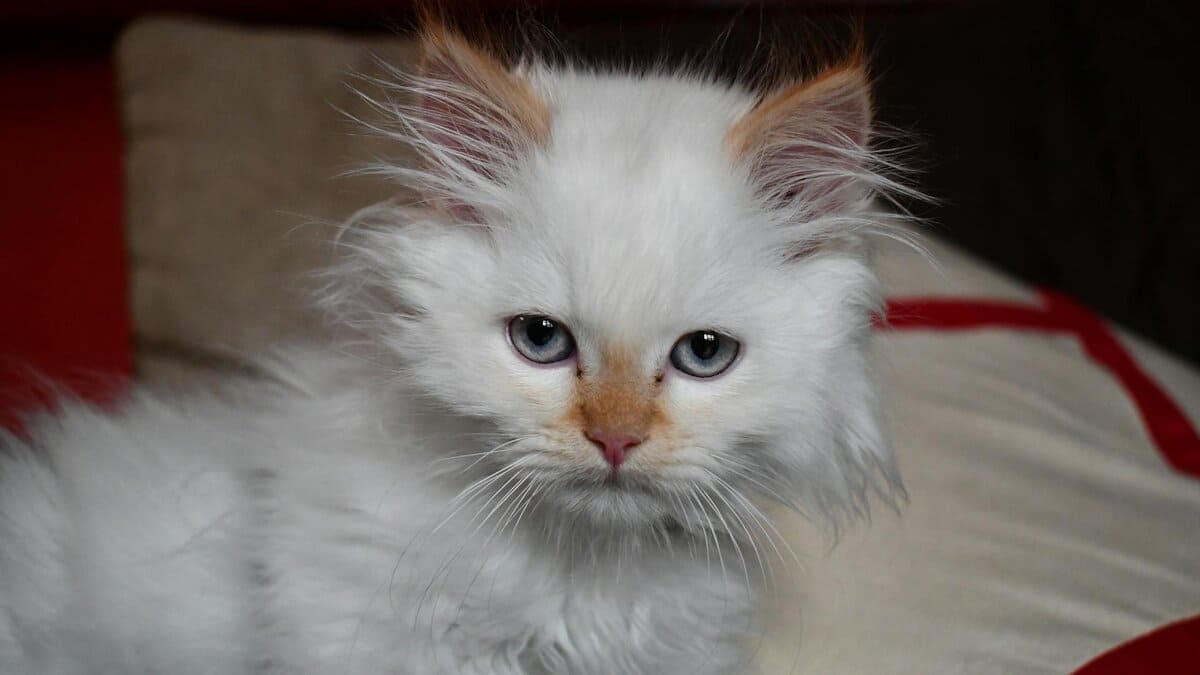 Он почти полностью белый, но… ушки и носик рыженькие. Лена этого чудного котенка…