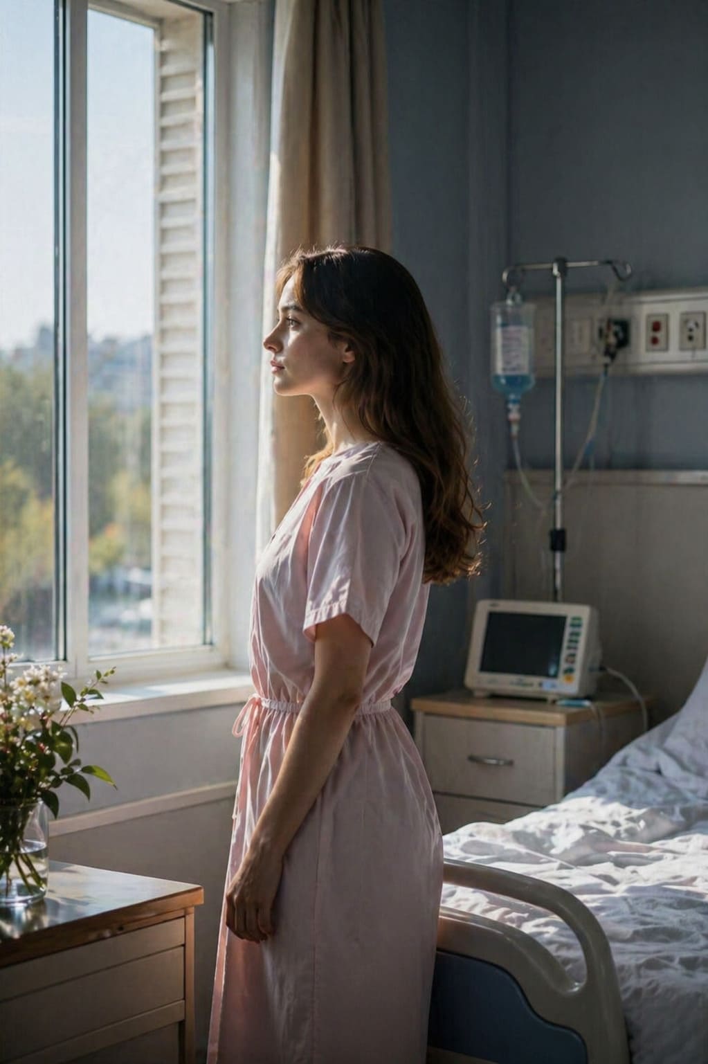 Очнулась Алиса уже в больнице. Вокруг были белые стены, запах лекарств и тихий писк приборов. Она медленно осознавала, что лежит на кровати, а рядом сидит медсестра в светло‑голубом халате. Женщина заметила, что пациентка пришла в себя, и улыбнулась.
