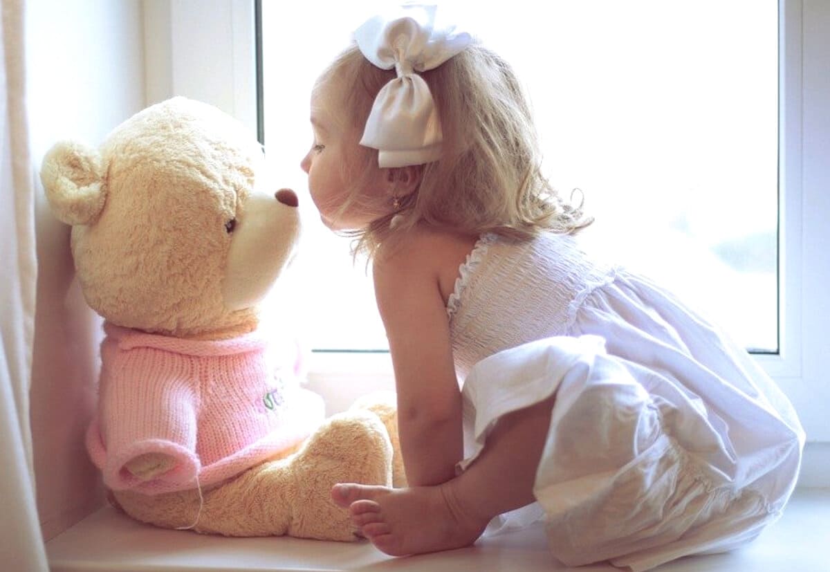 Маруся уже забылась и, опасливо поглядывая на, лежащую на диване, новую куклу пыталась привязать бантик на ухо своему любимому игрушечному медведю, с которым она никогда не расставалась. Мишка был с очень милой доброй мордашкой, мягкий, такой, что его хотелось обнять. Маруся спала с ним, ела и гуляла, словом делала всё, что делает четырёхлетний малыш, не расставаясь с игрушкой. Это был подарок бабушки Оли, Наташиной мамы.