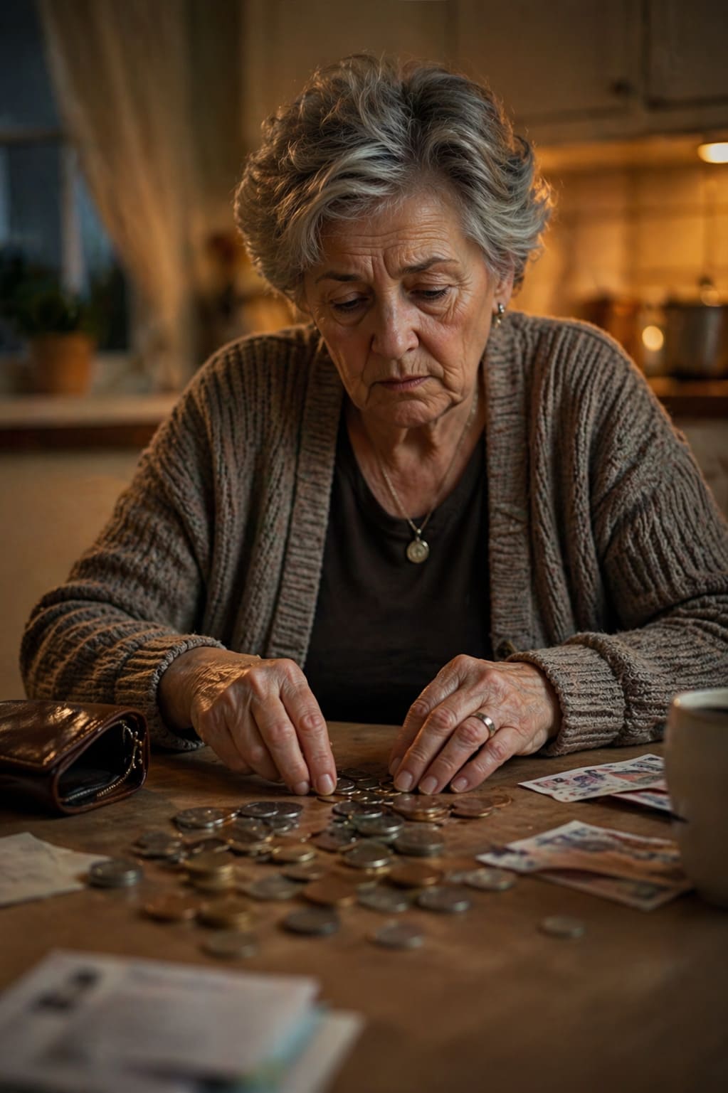 Валентина Ивановна поставила чайник, села на табуретку и открыла кошелёк. Высыпала всё на стол. Пересчитала.