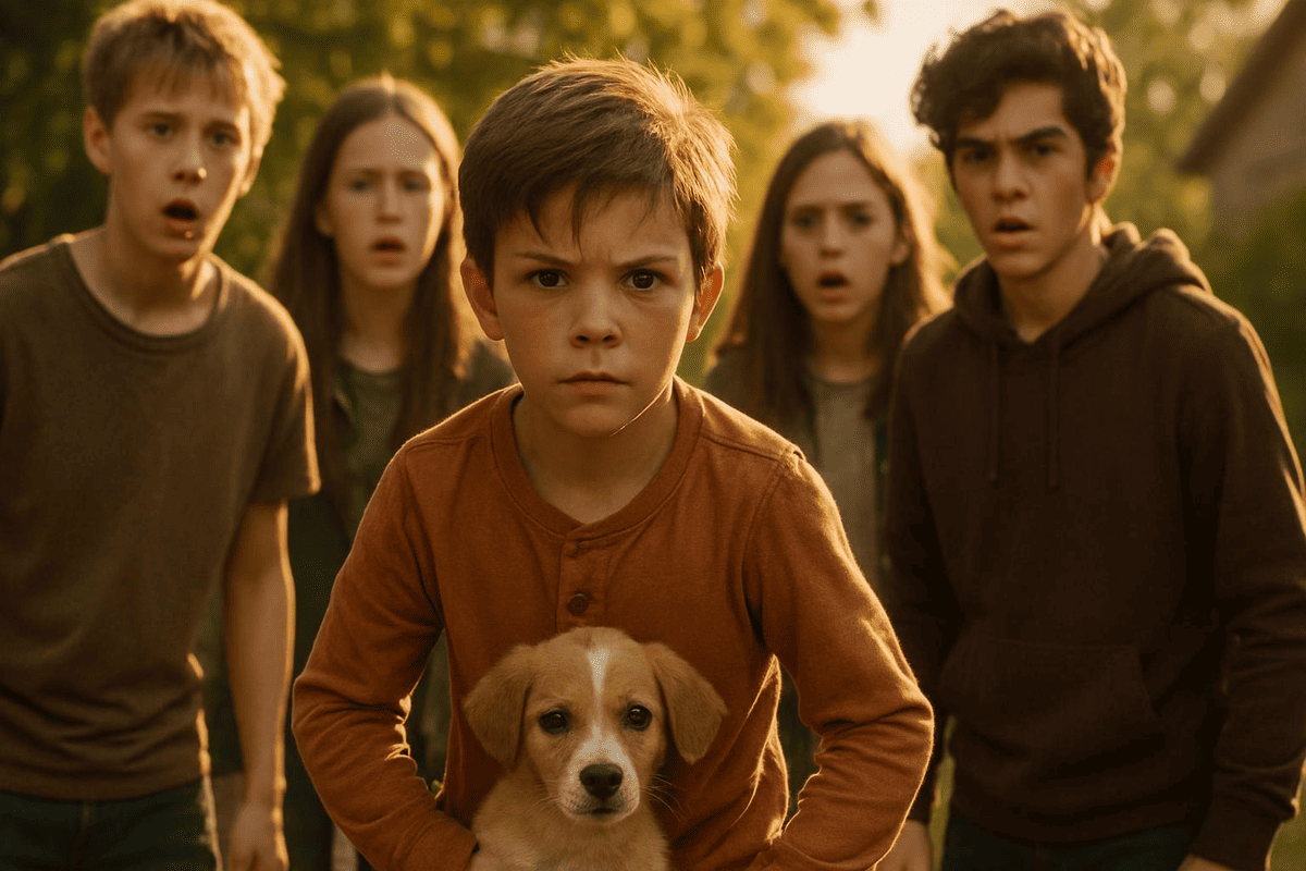 Миша медленно подошел к щенку и встал между ним и подростками. Руки все еще дрожали, но он не отступал.