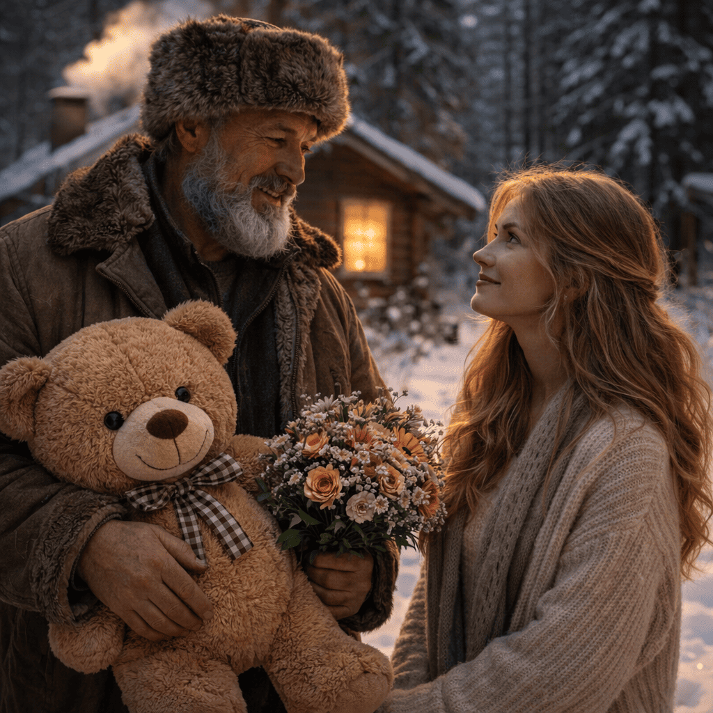 Утром, проснувшись, Катя не обнаружила в доме своего вчерашнего гостя: видимо, он ушёл ещё затемно. Она выглянула в окно – и едва не лишилась чувств. На снегу напротив окна сидел огромный плюшевый медведь. О таком она мечтала на своё десятилетие. Отец тогда обещал привезти его из командировки, но жизнь распорядилась иначе.