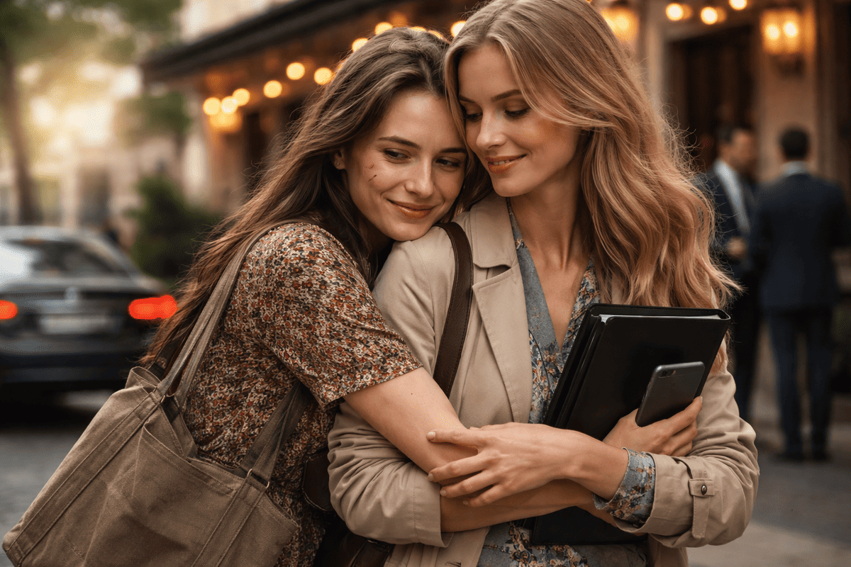 Лиза едва удержалась, чтобы не вскрикнуть. Несколько лет — ни слуху ни духу, и вот сестра стоит перед ней, уверенная, ухоженная, с профессиональной папкой в руках. Вика тоже узнала Лизу и на секунду потеряла привычную собранность. Но обе поняли: сейчас нельзя ни подойти, ни заговорить. У каждой своя роль, и лишнее движение разрушит всё.