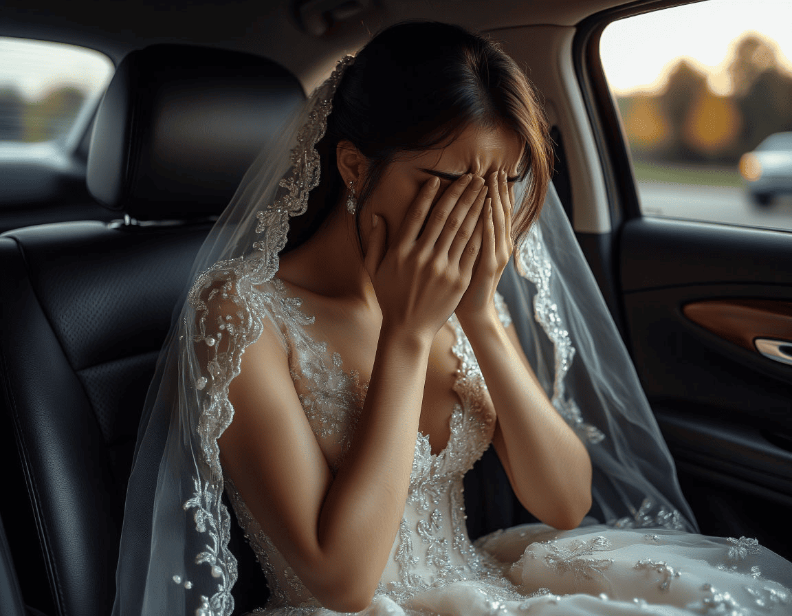 В салоне автомобиля Лера наконец дала волю слезам. Её свадебное платье, всё ещё прекрасное, но слегка помятое, казалось символом разрушенных надежд.