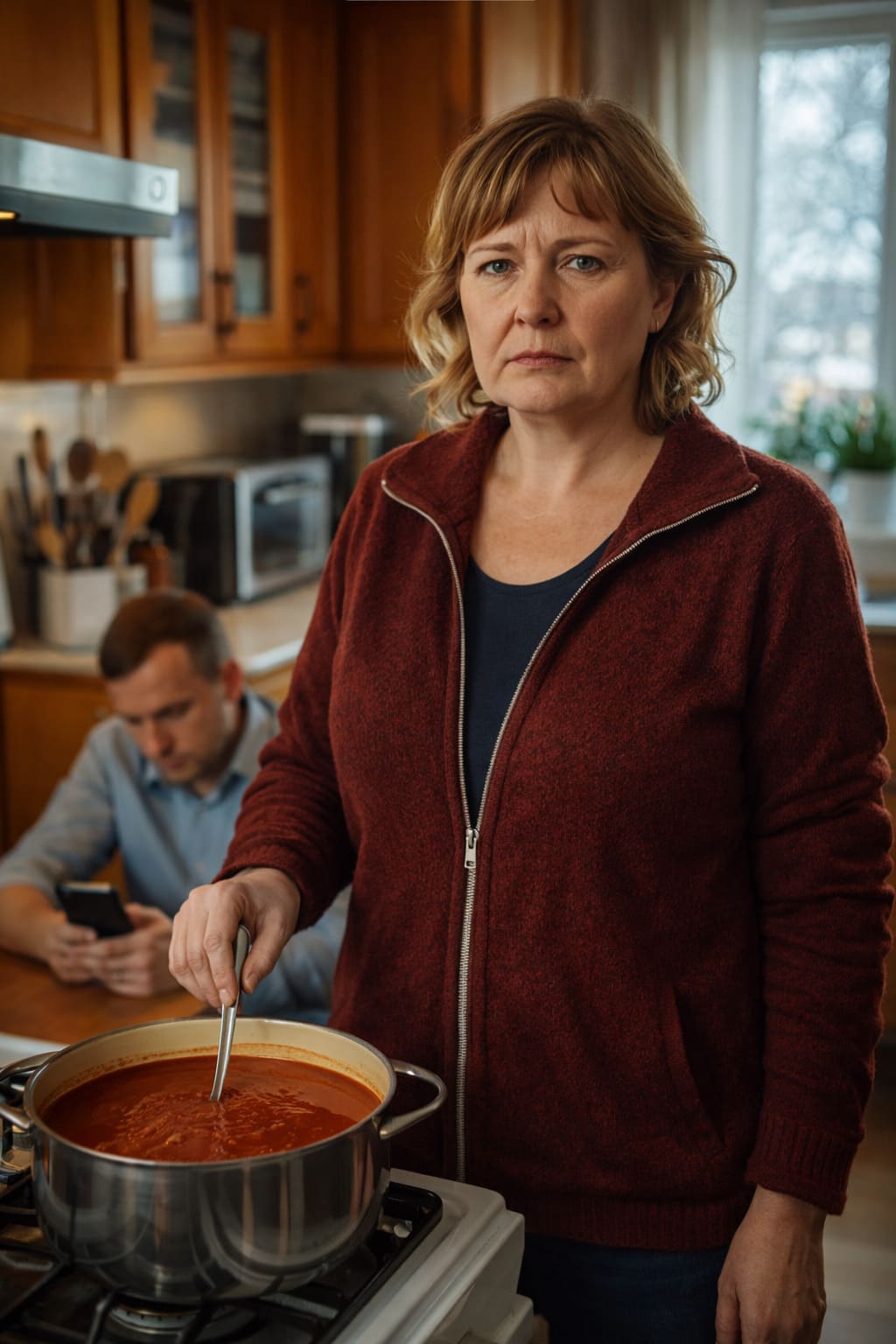 Раиса Семёновна поставила кастрюлю с борщом на стол и посмотрела на мужа. Игорь Николаевич уже сидел, развернув телефон, даже не обернулся на звук.