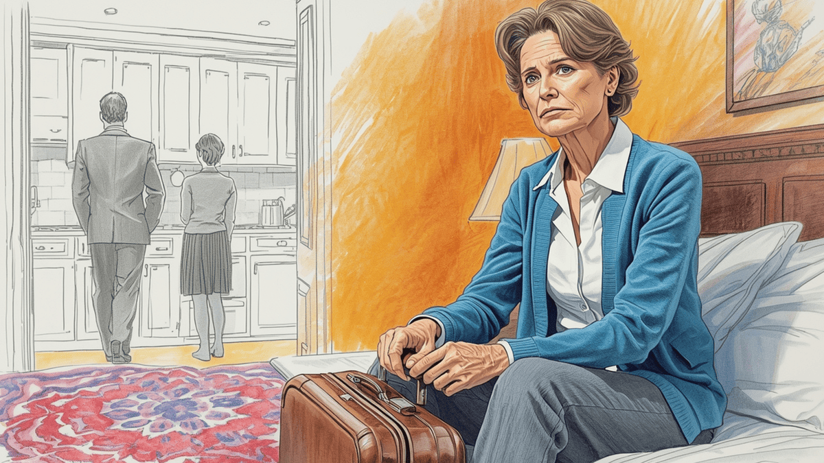 Гостиница была обычная, не дорогая и не дешёвая, из тех, что стоят в каждом городе и ничем особенно не запоминаются. Небольшой номер на третьем этаже, окно на улицу, жёлтый свет фонаря снаружи. Кровать была застелена ровно, без единой складки, и от этой ровности, от этой безликой аккуратности у Елены Михайловны что-то сжалось в горле. Здесь не было её вещей. Здесь не было чужих вещей. Здесь вообще не было ничьих вещей. Просто чистая, нейтральная комната, которая никому не принадлежала и никого не ждала.