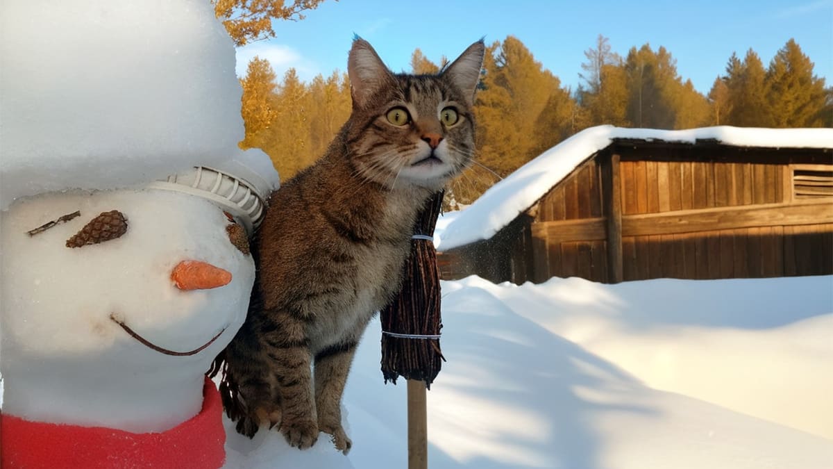 Кот молодецки вспрыгнул на снежную макушку, качнулся туда-сюда и… баба осталась безголовой.