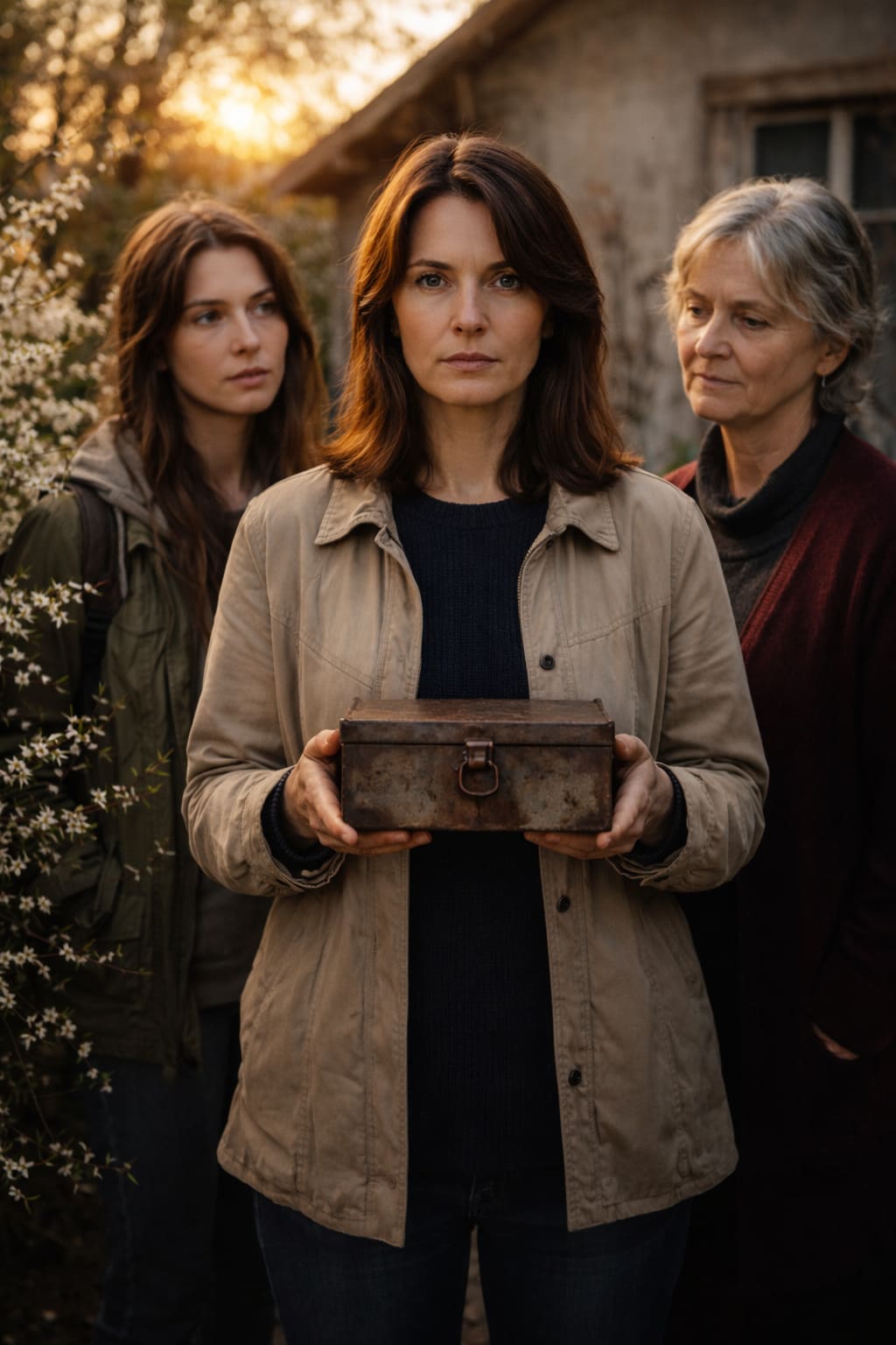Через несколько минут на траве лежала небольшая коробка, вся в рыжих пятнах. Сбоку висел крошечный замок. Лидия вставила ключ. Металл сначала не шёл, а через миг щёлкнул так ясно, что все трое вздрогнули.