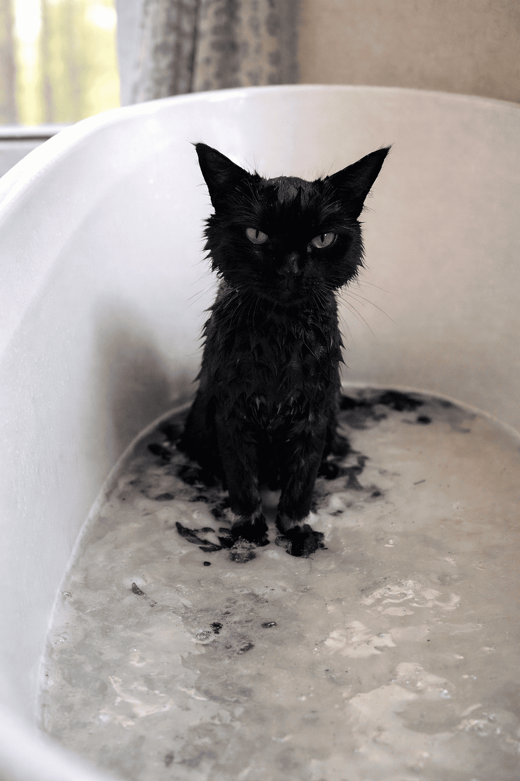 Дома она набрала тёплую водичку в ванную и осторожно, предварительно надев мед перчатки, достала кота из куртки и посадила туда.