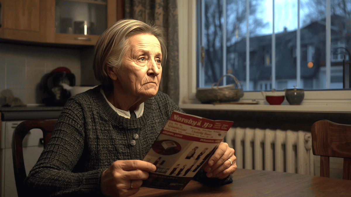 Глянцевая брошюра. На обложке улыбающиеся пожилые люди за чашкой чая. Крупными буквами: «Пансионат для пожилых людей. Комфорт. Забота. Уважение». Внутри фотографии комнат, столовой, зала для занятий. И прайс-лист.
