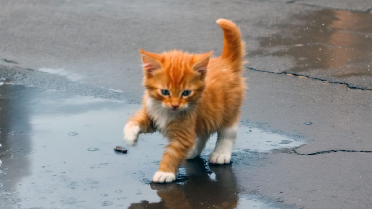 Он кивнул и, подбежав к котёнку, подхватил его на руки. Разбрызгав при этом тысячи брызг из лужи, в которой сидел малыш.
