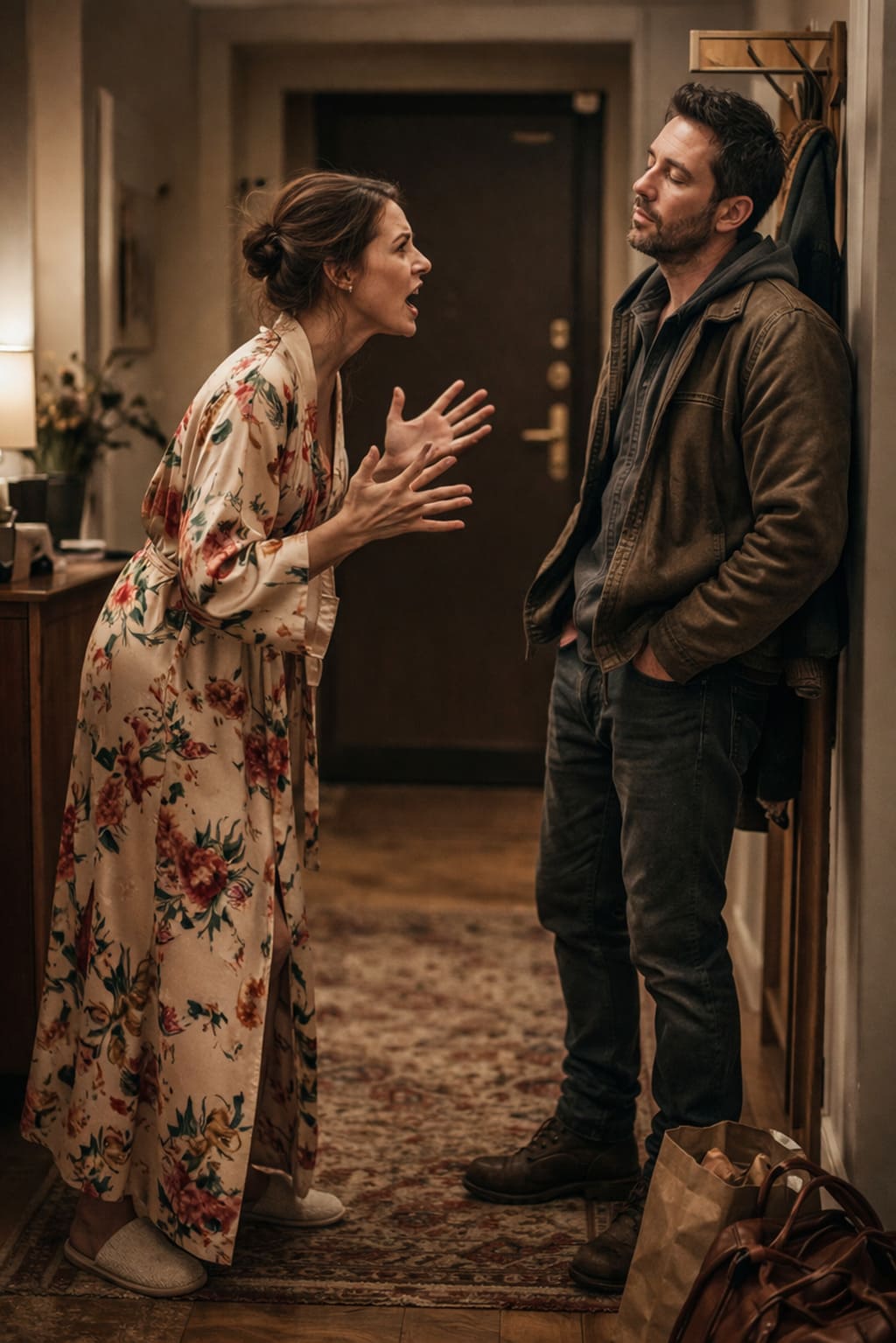 За входной дверью послышался нарастающий гул лифта. Механизм старой лебедки завывал, поднимая на седьмой этаж компанию предвкушающих веселье мужчин. Виктор, услышав этот звук, победно усмехнулся. Он был уверен: сейчас, когда в квартиру ввалятся его друзья — шумные, веселые, с пакетами чипсов и звенящими бутылками, — Жанна отступит. Она не посмеет устраивать сцену при посторонних. Женская гордость и страх публичного позора заставят её проглотить обиду, натянуть фальшивую улыбку и уйти в спальню. Социальное давление — великая вещь.