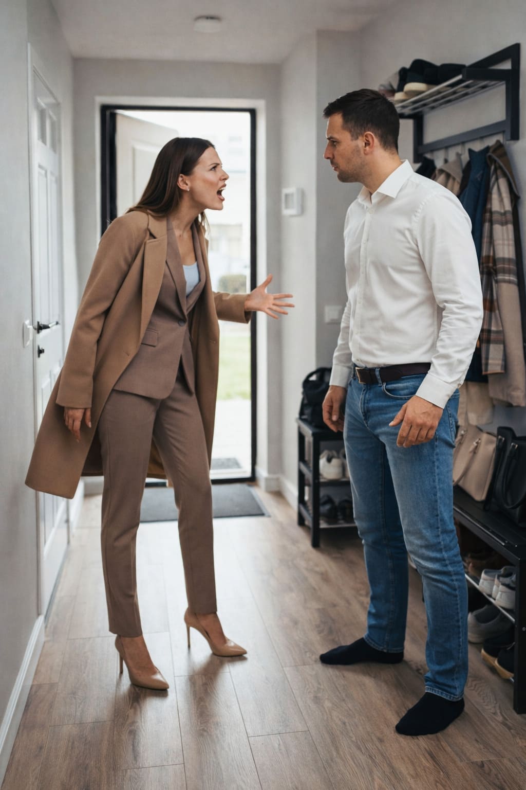— Поставь сумку на пол. Медленно, — голос Олега звучал пугающе обыденно, словно он просил передать соль за обедом, а не преграждал путь собственной жене в тесной прихожей. — И сними это пальто. Ты выглядишь смешно.