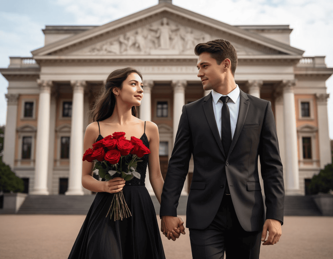 Вечером Ася стояла перед театром в новом платье, купленным специально раи этого события. Она поправила прядь волос, машинально проверила, всё ли в порядке с макияжем, и почувствовала, как внутри растёт волнение.