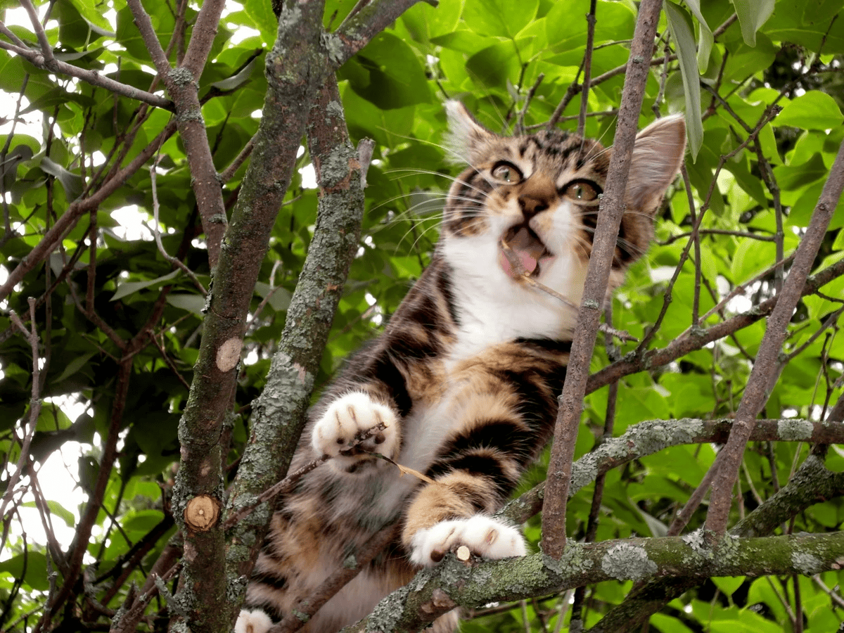 Собака убежала, а кошечка боялась спускаться, сидела на ветке и плакала. У нее была кошачья истерика.