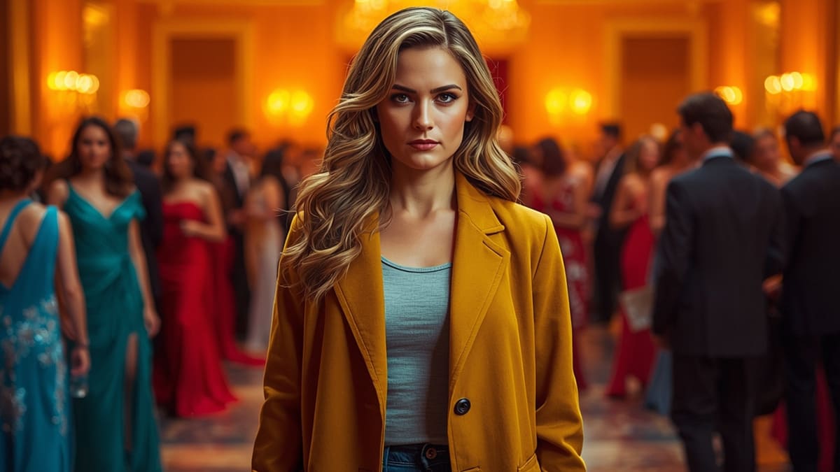 Она шла через зал, и несколько человек оборачивались на неё. Незнакомая женщина в пальто, не в вечернем платье. Это бросалось в глаза. Но она шла, и люди снова поворачивались к своим разговорам.