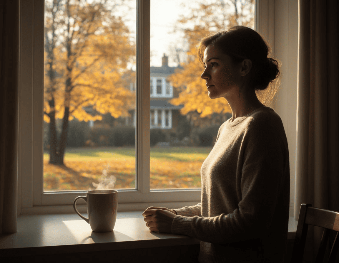 Дома она прошла на кухню, села у окна и долго смотрела наружу. Вечернее небо медленно окрашивалось в розовые и фиолетовые тона, а вдоль тротуаров уже зажглись фонари, бросая тёплый свет на мокрые после дождя дорожки. Римма машинально крутила кольцо на пальце – то самое, которое муж подарил ей в день их помолвки.