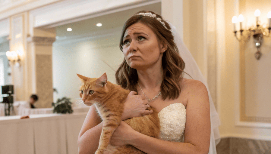 В ЗАГСе назревал скандал. Сергей, увидев свою невесту с грязным котом на руках и в испачканном платье, побледнел как мел.